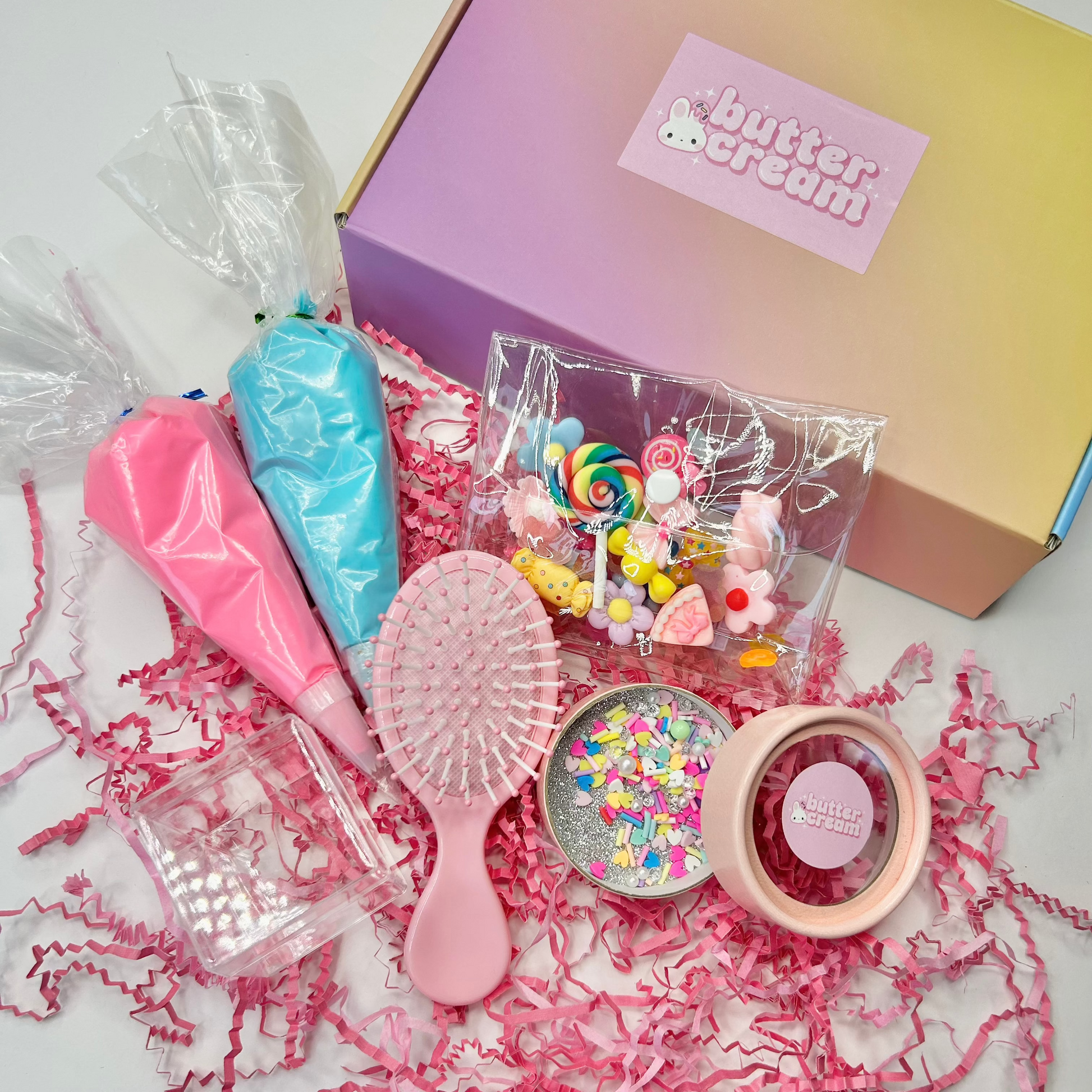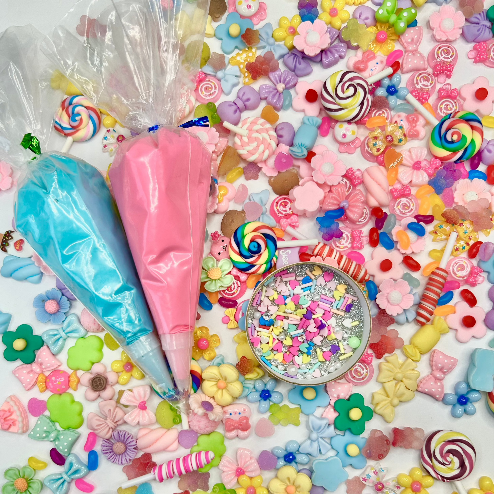 Unleash your creativity with our Candy Kit! This decoden sensory art kit is perfect for kids and adults alike. Use the frosting and charms to decorate accessories and get that cake decorating feel (but don't eat them!). Get ready for some sweet, artistic fun!