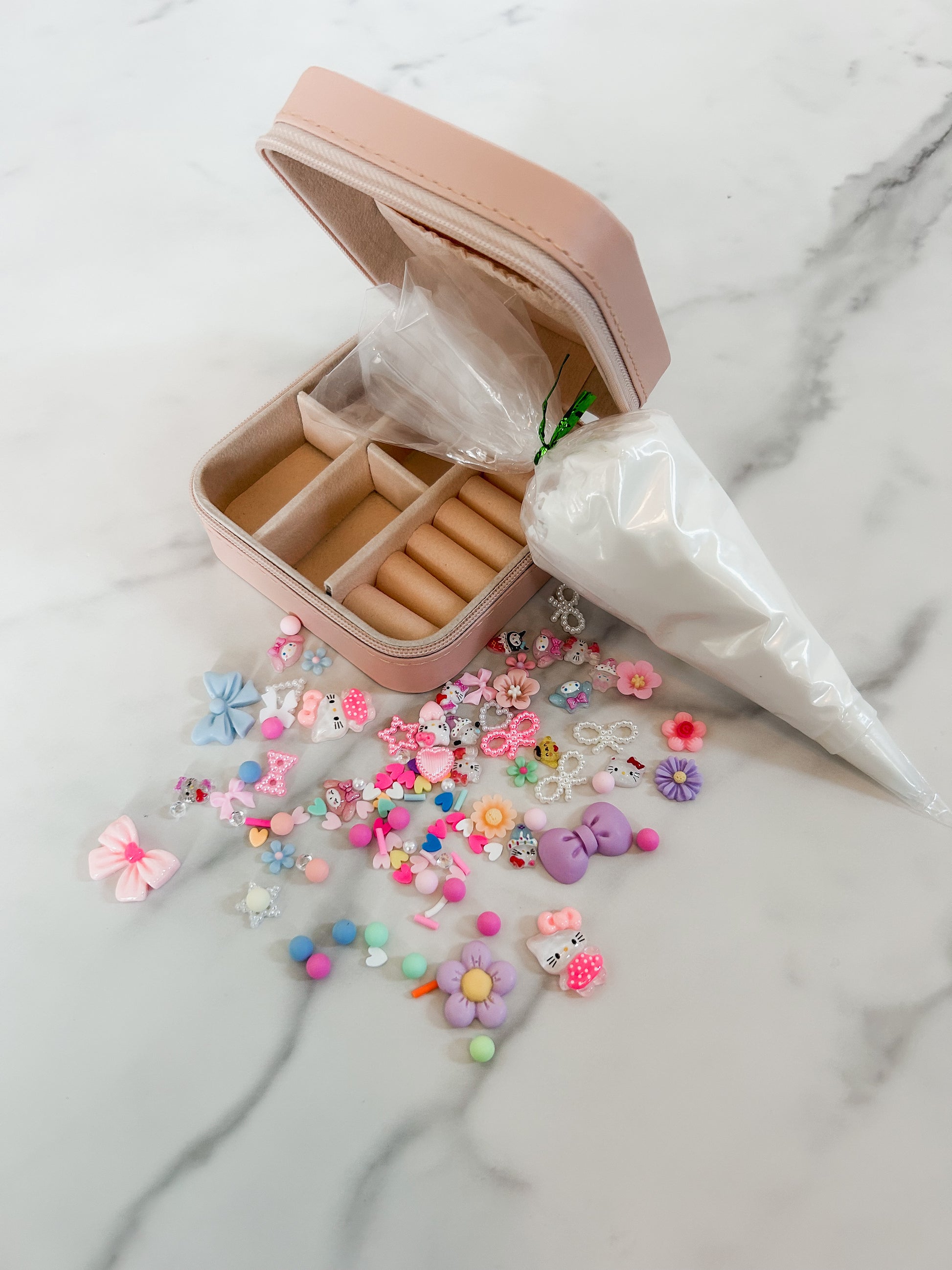 Kit comes with one frosting, a mini jewelry box to decorate and assorted Kawaii Kitty & Friends charms. But the fun doesn't stop there- we supply you with enough frosting to decorate any other accessories you may have like phone cases, notebooks, water bottles, and more! Go wild and get creative!